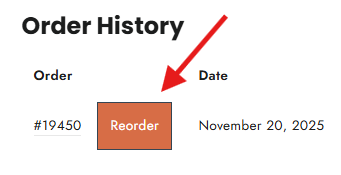 Log in → View past order → Click Reorder.