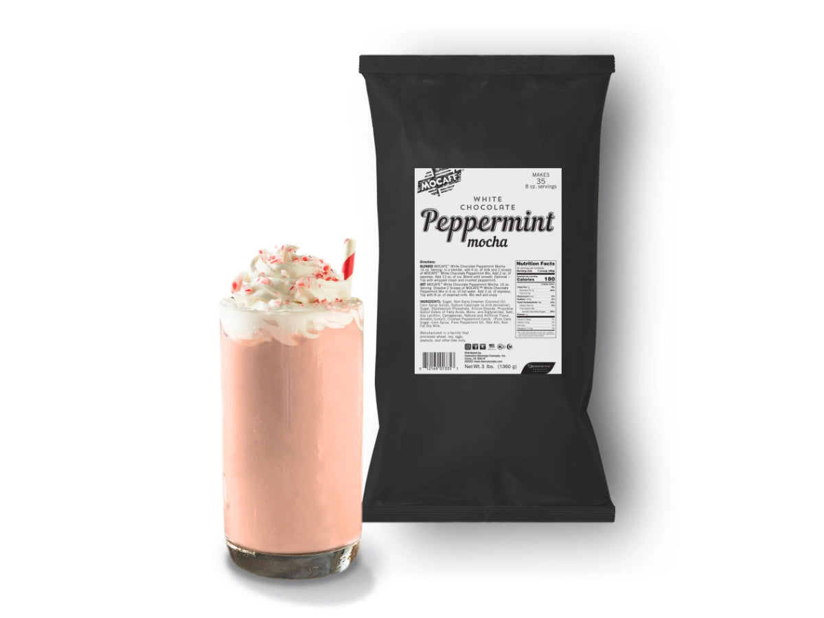 Unlike traditional mochas, this mix contains no coffee, giving you the flexibility to create your own signature holiday drinks. Use it as a stand-alone hot white chocolate base, or add a shot of espresso to make a peppermint white mocha that your customers will crave all season long. Great as is for kids too-- add a "candy Cane Frappe" to your menu.
